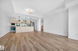 Live Like You’re in a Luxury Hotel! This 2 bed, 2 bath open-layout condo features 9' ceilings, a gourmet kitchen with gas cooktop, built-in oven, and microwave that flows into the living room with an electric fireplace and spectacular views of the pond and courtyard. From here, step out onto a large private balcony equipped with BBQ gas hookup. The primary suite offers his & hers closets and a spa-inspired ensuite with marble tile, soaker tub, and walk-in shower. Floor-to-ceiling windows, central A/C, and upscale finishes complete the home. Condo fees include ALL UTILITIES + INTERNET. Recent upgrades: NEW vinyl flooring, fresh paint, NEW washer & dryer, NEW dishwasher & microwave. Building amenities include a gym, and this unit comes with titled underground parking (#165) and a titled storage cage (#146). Steps from the LRT station, restaurants, shopping & Dog Park. Move-in ready for your elevated lifestyle!