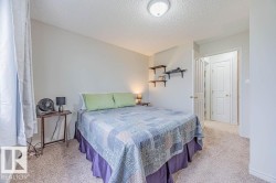 Location, location, location: peaceful view of green space & walking/biking trails, next door to Namao Centre, 4 blocks to Henday 97 St exit. Ideal for first time home ownership, or Investor wanting turnkey property. Canadian Forces Base/CFB Edmonton nearby: ideal location for Military staff. Master with walk-thru closet fits King set. In-suite laundry. Low maintenance lino in kitchen (easier to clean than tile; no grout). Gas line for BBQ on deck (never buy propane again). Fitness room, games room, and library. Main floor gym and 2nd floor social room. Brand new roof in 2018. Managed by KDM Management. Condo fees of $434.55/month includes heat, water and sewer. Only pay electricity, which is $70/month. Taxes of $1,581.68 in 2025. One outdoor energized/plug-in titled parking stall (#121) PLUS one indoor storage cage (hard to find in condo buildings). Additional parking stalls available $100/mo. NO PETS building.perfect for PRIVACY. RELAX in the master bedroom w/a walk through closet featuring closets.
