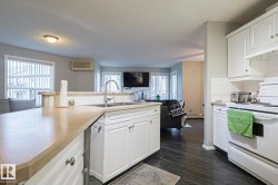 Welcome to the desired 18+ complex of Henday Village! This 954 SQFT, 2 bed 2 bath CORNER UNIT has everything and more. TITLED UNDERGROUND STALL, A/C, STORAGE ROOM, IN-SUITE LAUNDRY, ENGINEERED HARDWOOD & PET FRIENDLY. As you enter the unit you are greeted with an open concept floor plan with plenty of natural light coming in from wall to wall windows, 3 piece bath, living room with private view and corner balcony, dining area, 2 nicely sized bedrooms with the master suite including 4 piece bath. Lastly you have the modern white kitchen with plenty of cupboard space & eat-up bar. Amenities include social rooms, gym & 3 car wash areas. Unbeatable location with being minutes away from West Edmonton mall and all amenities.