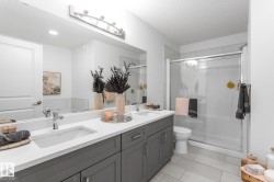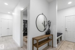 The Otis-Z by Akash Homes — a modern Zero-Lot-Line design that blends style, functionality, and comfort. With 3 bedrooms and 2.5 bathrooms, this thoughtfully designed home offers room to grow. The open-concept main floor with 9-ft ceilings & den creates a bright, airy feel, highlighted by an open-to-below feature that adds architectural flair. Upstairs, enjoy a convenient bonus and laundry room. Retreat to a spacious primary suite with an expansive walk-in closet and relaxing 5-piece ensuite. With quartz countertops throughout and quality craftsmanship in every detail, the Otis-Z is built for lasting value. Enjoy a SEPARATE SIDE ENTRANCE and a $5,000 BRICK CREDIT to make your home uniquely yours. PLEASE NOTE PICTURES ARE OF SHOW HOME; ACTUAL HOME, PLANS, FIXTURES, AND FINISHES MAY VARY AND ARE SUBJECT TO AVAILABILITY/CHANGES WITHOUT NOTICE.