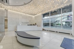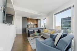 Modern 1 Bedroom + Den corner unit at The Legends Private Residences in Edmonton’s Ice District. Features include hardwood floors, floor-to-ceiling windows, and a sleek modern style kitchen with German appliances and quartz countertops. Enjoy in-suite laundry, a private balcony, and an included ARCHETYPE gym membership. Comes with a titled heated underground parking stall. The Residence Club includes concierge service, indoor pool, owners’ lounge, spa, BBQ terrace, and direct access to Rogers Place, City Centre, the Pedway system, and not to mention great restaurants and night life. Ideal for professionals seeking upscale downtown living.