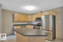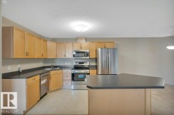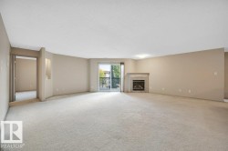 Welcome to the well-maintained Promenade Eaux Claires! Experience SPACIOUS condo living! This expansive, 2 Bedrm, 2 Full Bath, 3rd floor unit is one of the largest in the building with a UNIQUE, OPEN-CONCEPT floor plan. Entertaining is made easy as the Kitchen w/ brand new SS Appliances, ample cupboard space, center island w/ storage opens to the Dining & Main Living Area, complimented by the corner gas fireplace. From the living area, step out & enjoy the balcony equipped w/ natural gas BBQ line. The generous Primary Bedrm invites a king size bed, has a walk-thru closet to the 3pc Ensuite. Large Second Bedrm boasts a walk-in closet & is adjacent to the 4 pc Main Bath. The unit has been freshly painted thru-out, even the ceilings! In-Suite Laundry is a luxury w/ stacked washer/dryer. Central A/C. Heated Undergrd, Titled, Tandem Parking Stalls w/ Storage Cage. This secure building offers good Visitor Parking, Fitness Room, Games Lounge, Guest Suite, & cozy Lobby! Close to amenities! 5 min to The Henday!