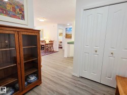 Welcome to Wolf Willow Manor! This inviting 2 bedroom, 2 bathroom condo in a sought-after 55+ community offers comfort, style, and convenience. Ideally situated on the 3rd floor with sunny south exposure, it features a refreshed kitchen with bright white cabinets, brand-new vinyl plank flooring, new high end fridge and an open-concept living and dining area with a cozy gas fireplace. The spacious primary suite includes his & hers closets and a private ensuite. Enjoy outdoor living on your large balcony with natural gas hookup for BBQs. Added perks include in-suite laundry and storage, plus a heated underground parking stall with storage cage, located just steps from the elevator. Residents enjoy a vibrant lifestyle with access to a social hall, fitness room, library, workshop, car wash, and pool tables. Perfectly located near shopping, medical offices, the Farmers Market, YMCA, and public transit — this is maintenance-free living at its best!