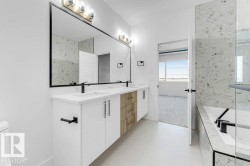**MAIN FLOOR BEDROOM** BIG PIE SHAPE LOT**SPICE KITCHEN**Masterfully blends classic Craftsman charm with modern living. The elegant exterior boasts a captivating mix of stone and cedar composite siding, a glazed entrance door, and a welcoming pre-cast concrete stoop, creating incredible curb appeal. Step inside to a thoughtfully designed layout featuring 1,161 sq.ft. on the main level and 1,114 sq.ft. upstairs. The second floor is a private retreat, hosting a spacious master suite with a walk-in closet and ensuite, two additional bedrooms, a versatile bonus room, and a convenient laundry area. Highlights include a relaxing soaker tub, an electric fireplace, and ample storage throughout. Built with both style and safety as a priority, this move-in-ready home is perfect for entertaining and comfortable family life. It’s a perfect blend of elegance, function, and modern convenience. Your dream home awaits!**PHOTOS ARE REPRESENTATIVE**