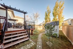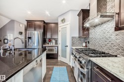 Outstanding Gorgeous, Qualty, Elegance, Many Upgrades, Move in Condition !!! Great Location east facing treed back yard backing walk way to ravines, ponds, playground ... Home & property show 12 out of 10. Quick Possession, Immaculate & Upgraded - Truly a Chefs Kitchen, beautiful granite island w sink, gorgeous stainless steel appliances, oversized premium gas stove, instant boiling water tap, soft close cappucino cabinets & drawers, garbuartor, walk in pantry, abundance of counter space in a perfect open spacious main floor 9 foot ceiling Great Room Concept opening to a generous 16 by 16 foot raised deck w gas line in a mature treed setting excellent for the Best family + Great entertaining Lifestyle. Be prepared to be impressed by the designer finishing throughout providing everydayliving in high end luxury. A lavish primary bedroom with spa ensuite, Fantastic 2nd storey Bonus Room along w 2 more bdrms is perfection. The Current 2026 City of Edmonton property tax value is $534,500 Must View !!!
