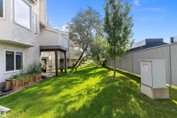 WALKOUT BASEMENT in this THREE BEDROOM home with FOUR BATHROOMS. South facing deck and back patio, and green space. LARGE PRIMARY BEDROOM is 13'5" x 12'3" and it has a THREE PIECE ENSUITE BATHROOM. This bedroom does need new paint and carpet. The other two bedrooms upstairs are also a good size, 13'7"x10' and 12'2"x11'11" and both have closet organizers. HIGH EFFICIENCY FURNACE installed about January 2018. The basement family room opens to the back patio and green space. There is also a den or office area in the basement, along with a bathroom. There are CUSTOM FITTED BLINDS in the home. Features you may appreciate: attached garage, nearby visitor parking, next to parks, walking distance to schools, and GREY NUNS HOSPITAL. Shopping close by at Mill Woods Towne Centre, and the LRT line is also close. This is a small, quiet, and well kept complex with vinyl windows, and Perma decks.