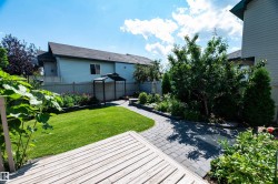 Welcome to this wonderful home in Clareview Town Center! This 3 bed, 2 bathroom, 1300 Sqft has an amazing backyard oasis. $30k was spent on the landscaping over the years.Gas line for BBQ, Gazebo & custom cedar bench that is staying with the purchase. House has cold AC, heated & insulated 20 x 20 garage with overhead storage. New flooring on main just done, and a custom built in TV wall unit. Remote controlled power blinds main floor & primary and north bedroom. And the natural south facing windows allow wonderful light that just brightens the whole main floor. Just spectacular. Basement is ready to develop to suit the new owner.