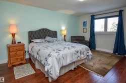 Spacious and updated raised bungalow ideal for a growing family! This extremely well-maintained home offers 6 bedrooms and 3 baths, including a beautiful 3-piece ensuite with a rain showerhead. 3 generous bedrooms are located on the main level, with 3 additional bedrooms downstairs—perfect for kids, guests, or a home office—each with a nice-sized closet. The updated kitchen features loads of cabinetry and pantry storage, a farmhouse sink, and built-in microwave, making everyday living and entertaining easy. Stay comfortable year-round with central A/C, and cozy up in the fully developed basement featuring a beautiful new woodstove, plus there's a wet bar & mini fridge -- ideal for relaxing or hosting. Outside there is a maintenance-free deck with a shed and convenient storage space below. The gorgeous yard has mature trees and shrubs, along with crabapples. Oversized 25x19 garage is heated. Move-in ready and cared for with pride, this home is ready for a new family to create lasting memories.