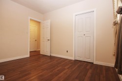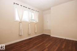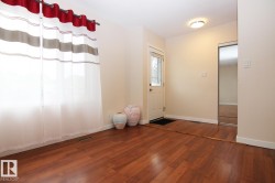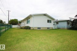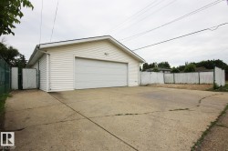 Great Curb Appeal! Spacious Corner Lot, Huge Garage & Plenty of Parking! Welcome to this 1,219 sq. ft. fully finished bungalow! This home has seen many updates including windows, siding, soffits, fascia, shingles, furnace, hot water tank, stainless steel appliances, and a refreshed kitchen with updated cabinets. Offering 4 bedrooms plus a flex room that could be a 5th, 2 bathrooms, and a separate entrance for future suite potential-ideal for families or investors. The finished basement has a large rec room with a charming wood-burning fireplace. Outside features an extended double garage with space for up to 6 vehicles. The fully fenced and landscaped yard is split into two areas—ideal for dogs or tenants. This home is steps from Jubilee Park with its spray park, skating rinks, playground, and picnic areas. Also, close to shopping, public transportation, restaurants, the North Sask River Valley trails, and roadways including Yellowhead Trail and Anthony Henday. Pet & Smoke free! Don’t miss this one!