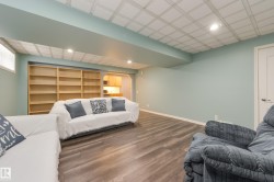 This charming 2-storey home in Edmonton's Miller community offers 2,100 sq. ft. of living space with 3 bedrooms and 3.5 bathrooms. The wide front drive and heated double garage lead to a welcoming foyer with hardwood flooring. The open-concept main floor includes a bright living room with gas fireplace, a spacious dining area, and a kitchen featuring oak cabinetry, stainless steel appliances, and a large island. A 2-pc bath/laundry room completes the main level. Upstairs, the primary bedroom is bright and spacious with a walk-in closet and a 4-pc en-suite with a jetted tub. Two additional bedrooms share a 4-pc bath. The fully finished basement offers a recreation room, kitchen/bar area, and 3-pc bath—perfect for guests. The roofing was professionally done this year, and the hot water tank was replaced last year. The backyard is fenced with a deck, shed, and space for entertaining. Located near Manning Drive, shops, parks, and schools, this home also includes central air and vacuum. Ready to move in!