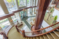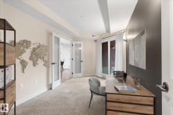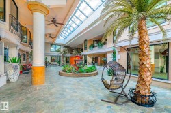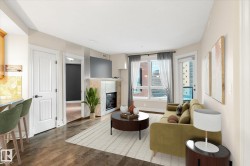 Exceptional 5th-floor unit in MERIDIAN PLAZA, offering upscale urban living in a beautifully designed building. This spacious open-concept suite features hardwood floors, 9’ ceilings, southwest-facing windows, a cozy gas fireplace, & garden door to the COVERED BALCONY. The kitchen offers granite countertops, sleek appliances, a breakfast bar, pantry, and an adjacent dining area. The primary suite includes a 3pc ensuite, plenty of storage, and a generous walk-in closet. The second bedroom, situated on the opposite side for enhanced privacy, also features a walk-in closet, balcony access, and is conveniently located next to the main 4pc bath. Enjoy in-suite laundry with extra storage, plus TITLED UNDERGROUND PARKING. Additional AMENITIES of this luxurious complex include a gorgeous Mediterranean themed atrium, fitness room, bike storage, mixer/event room with a full kitchen, & elegant owner’s lounge. Terrific location 1 block from Jasper ave & close to restaurants, shopping, transit, and the Ice District.