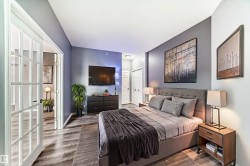 TOP FLOOR | FULLY RENOVATED | DOWNTOWN + RIVER VALLEY LIFESTYLE Live at the edge of the River Valley in this beautifully upgraded 2-bed, 2-bath condo in Victoria Promenade. This move-in-ready top-floor unit features a $30K custom kitchen makeover with stainless steel appliances, tile backsplash, and soft-close cabinetry. The open layout is filled with natural light and offers 9’ ceilings, new flooring, paint, and trim throughout. Enjoy downtown views from your private balcony, a gas fireplace for cozy evenings, and 2 full bathrooms with excellent separation between bedrooms. Includes 2 secure underground parking stalls (tandem) + storage. Pet-friendly building with rare amenities like a woodworking crafts room, games lounge, and more. Condo fee includes heat, water, reserve fund, exterior maintenance, snow removal & management. Quiet, well-run building just steps from the Promenade. Nothing to do but move in! (photos digitally staged or modified)