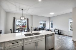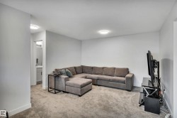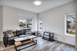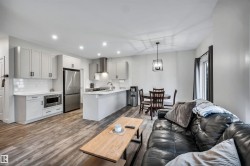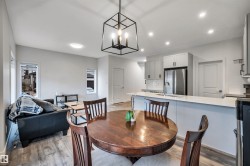 Welcome to this 1,717 sq.ft. corner half duplex with a dbl attached garage in the desirable community of The Hamptons. The main floor features a spacious den, an open-concept kitchen with stainless steel appliances, modern cabinetry, a walk-through pantry, and an adjacent dining area. The living rm is bright and welcoming with large windows that fill the space with natural light. Upstairs you will find a generous bonus rm w/ a grand picture window, 3 bdrms including a primary suite w/ ensuite, 2.5 bathrooms, and convenient upper-floor laundry. This property backs onto a green shared space, providing additional privacy w/ no direct rear neighbors. This home is ideally located close to highly rated schools, minutes from shopping, dining, and amenities including Costco, and offers easy access to Whitemud Drive and Anthony Henday for quick commuting. A well-designed home in a family-friendly neighborhood with all the conveniences nearby.
