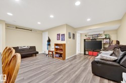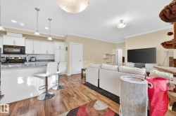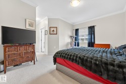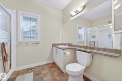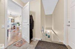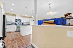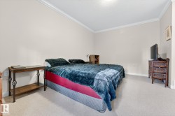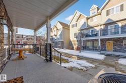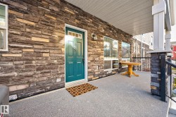 Nestled in a quiet southwest Edmonton community, this thoughtfully designed bungalow-style townhouse offers an inviting open layout ideal for both everyday living and hosting. The modern kitchen is a standout, showcasing stainless steel appliances, sleek cabinetry, generous counter space, and a central island with seating. The dining space overlooks the front veranda and yard, flowing seamlessly into a warm living area highlighted by a gas fireplace. The primary bedroom includes a walk-in closet and a private three-piece ensuite, while the second bedroom is positioned on the opposite side of the home for added privacy, adjacent to another full three-piece bathroom. A dedicated laundry room on the main floor provides direct access to the attached single garage. Downstairs, the fully developed lower level expands your living space with a large recreation room and an additional four-piece bathroom. An exceptional opportunity to enjoy comfort, function, and tranquility in a beautiful setting.