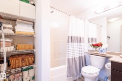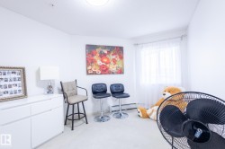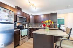 Welcome to this well-maintained 2 bedroom + den, 2 full bathroom condo in the desirable Matt Berry community. This unit comes with 2 titled parking stalls—one heated underground and one above ground—making it ideal for first-time buyers, professionals, or investors. The functional layout includes a spacious primary bedroom with walk-in closet and 4-piece en-suite, a second full bathroom, and a versatile den perfect for a home office or guest room. The kitchen features stainless steel appliances and has plenty of storage, and the west-facing balcony includes a convenient gas BBQ hookup. Additional highlights: in-suite laundry and access to building amenities including a fitness and social room. Conveniently located near public transit, shopping, schools and with quick access to Anthony Henday Drive and Manning Town Centre, making this a smart investment in a growing area! This property needs to be seen in person to be fully appreciated!