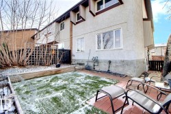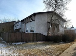 Welcome to this UPDATED, END UNIT townhouse in Norshire Gardens. Offers 2 spacious bedrooms and 2 full bathrooms with plenty of space for comfortable living. The main floor is filled with natural light and features an inviting living room with hardwood flooring, a roomy eat-in updated kitchen and dining area with large pantry and new dishwasher. Custom wood & iron stair railing leads you to the upper level where you will find 2 generous bedrooms, step in closet & an updated full 4-pc bath. The fully finished bsmt adds a versatile den, a 3-pc bath with a relaxing soaker jet tub, & laundry room with new washer/dryer. Newer vinyl windows, HWT (2025), Furnace (2019), new smoke detectors (2025), 1 energized parking stall right out front of door. Enjoy a private yard with very low maintenance featuring artificial turf, stone patio, garden boxes all surrounded by mature beautiful trees. Conveniently located just minutes from schools, shopping, public transit and major communiting routes.