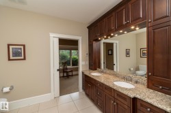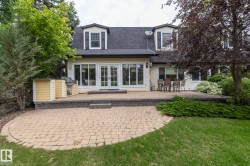 OWN A PIECE OF HISTORY ON FAIRWAY DRIVE! Backing directly onto hole #6 of the Derrick Golf & Winter Club, this 3,562 sqft masterpiece (built 1967, expanded 2005, renovated 2009) fuses timeless craftsmanship w/ modern luxury. A sun-splashed open plan showcases hardwood, marble tile, crown mouldings, wainscoting, LED pots & built-in speakers framing a true chef’s kitchen w/ granite counters, two-tone island & pro-grade appliances. Unwind beside the classic wood-burning hearth or the sleek electric FP. Two lavish primary suites, one on the main, one upstairs, offer spa-inspired baths (claw-foot & Jacuzzi tubs). Plus two more bedrooms: one upstairs & one in the finished bsmt, for a total of four, all served by five elegant baths. Dual laundry rooms add everyday ease. Outside, a stone patio w/ built-in BBQ overlooks the meticulously landscaped, irrigated yard. Hardie-board exterior, oversized heated garage w/ sink & drain, BurBer carpet, two A/C units—move-in perfection on Edmonton’s most prestigious street!