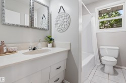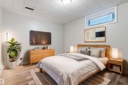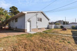 Situated on a large corner lot in sought-after Ottewell, this bright and versatile bungalow offers exceptional potential for investors, multi-generational living, or first-time buyers. The main floor features an inviting living room with large picture window, a spacious eat-in kitchen, and three bedrooms plus a full bath. The lower level offers a separate entrance leading to a bright second kitchen, two bedrooms, a full bath, and generous family room with cozy gas fireplace—ideal for suite potential. Numerous updates include newer vinyl plank flooring, fresh paint, and a newer hot water tank. Enjoy the mature, private yard with fruit trees, patio area, and single detached garage. Conveniently located just steps from schools, parks, and transit with easy access to Capilano Mall, downtown, and major routes. A solid home with excellent value and income flexibility in one of Edmonton’s most established neighbourhoods.