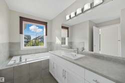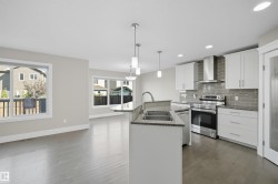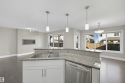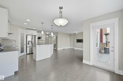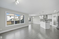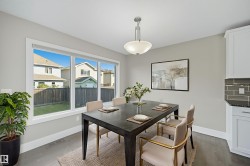 Thoughtfully designed with a flexible layout, ideal for single-family living or multi-generational lifestyles. Offering approx 2800sf of total living space on 3 levels. 3 living areas, 2 kitchens, 3 dining areas, 4 bedrooms & 4 bathrooms. Sunny South fronting, open layout features a cool toned neutral modern palette. Living room highlights a linear gas fireplace & views of private yard. Kitchen features white shaker profile cabinets, black granite, prep island & corner pantry. Spacious nook with direct access to deck. Upper level bonus room for family movie nights. Primary bedroom will house a king sized set & is complete with dual walk-in closets & 4pc ensuite. 2 additional bedrooms & 4pc bathroom for a growing family. Lower level offers an oversize recreation room which will accommodate most furniture arrangements. 2nd kitchen & 2nd dining area for inlaws, entertaining or extended guest stays. 4th bedroom & full bathroom complete this level. Steps to multiple parks/ponds & within catchment of 4 schools.