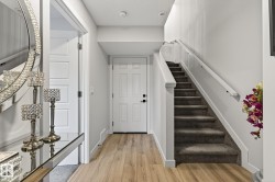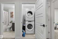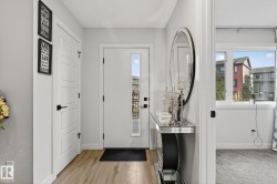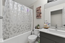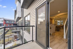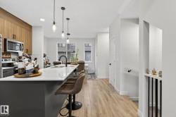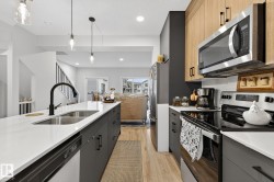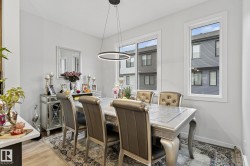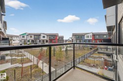 First time home buyers!! Welcome to Desrochers! This meticulously Maintained 3-storey townhome offers 3 bedrooms, 2.5 bathrooms, a double attached garage, and a fully fenced yard for privacy and peace of mind. Step inside to 9 ft ceilings that create a bright, open feel, complemented by quartz countertops, upgraded finishes, and stylish railings throughout. The modern kitchen flows effortlessly into the dining area with direct access to a spacious balcony—perfect for morning coffee, summer BBQs, or simply unwinding after a long day. Upstairs, the primary suite features a sunlit ensuite and a generous walk-in closet. You’ll also appreciate the second-floor laundry, a convenient linen closet, and the versatile flex room on the main level—ideal for a home office, workout space, or guest area. Enjoy truly maintenance-free living. Located just steps from Dr. Anne Anderson High School, the Community Centre, parks, trails, and everyday amenities, this home delivers comfort, convenience, and modern