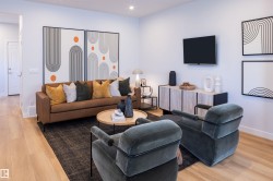 *FULLY FINISHED LEGAL BASEMENT SUITE* Main floor Flex room with FULL bath. We are pleased to introduce The Birch—an exceptional home that embodies style, functionality, and modern design. This home boasts a total of 1,586 sqft of meticulously designed living space located in the highly desirable Southeast community of The Orchards. The home showcases designer-selected finishes that seamlessly combine elegance and practicality. Upon entering, you will be greeted by 9-foot ceilings and exquisite luxury vinyl plank flooring that extends throughout the dining, living, and kitchen areas. There is a mainfloor Den and full bathroom. The kitchen is equipped with a beautiful stainless-steel appliances, 3CM quartz countertops and is complemented by an abundance of natural light from large triple-pane windows. As you ascend the staircase, you will be greeted by a spacious bonus room,3 bedrooms, laundry room (laundry pair not included) and main bathroom.