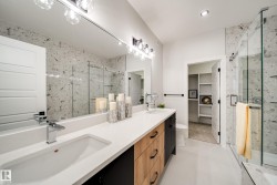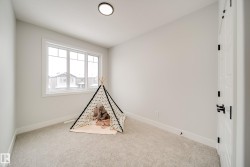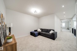 Welcome to this stunning BRAND NEW home in the sought after community of College Woods! The main floor showcases a BRIGHT, open-concept layout w/soaring open-to-below ceilings in the great rm, a versatile den/5th bedroom, full bath, & a stylish kitchen with EXTENDED cabinetry, dbl WATERFALL ISLAND, full butler’s pantry/SPICE KITCHEN, and brand new stainless steel appliances. A rear mudroom with built-in shelving adds everyday convenience. Upstairs, you'll find 4 spacious bedrms plus a bonus room, incld. a luxurious primary suite w/ a FEATURE wall, spa-inspired 5-piece ensuite with a SOAKER TUB, tiled shower, double sinks, & a large walk-in closet. A full bath & convenient upper floor laundry complete this level. Enjoy main floor 9' ceilings & 8' doors, plus a SEPARATE SIDE ENTRANCE to the unfinished basement,ideal for future suite potential. Situated on a LARGE LOT with NO rear neighbours, close to schools, parks, shopping, and amenities, this home delivers on style, space, and location. Call this home!