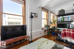 Fabulous top floor loft in the Stunning McLeod Building! Located in the heart of Downtown surrounded by wonderful restaurants, shopping, the Stanley A. Milner library, walking distance to Rogers Place, Sir Winston Churchill Square, the Art Gallery of Alberta plus easy access to public transportation and LRT. The open style floor plan offers beautiful finishes throughout including solid hardwood floors, crown moulding, and a modern style kitchen with stainless steel appliances. The living room and sleeping area are just the right size with large windows allowing for loads of natural light. This well maintained building has a convenient laundry facility and bike storage area. The original lobby has elegant finishes including marble throughout. A great opportunity as a primary or rental residence!