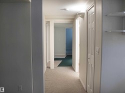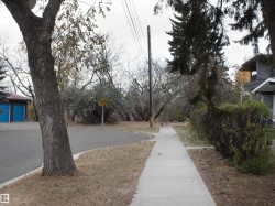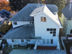 Just steps from the Mill Creek Ravine, this 2½ storey half duplex offers exceptional space and versatility! The main floor features a cozy living room with fireplace and large windows, a dining area open to the second floor, a bright kitchen with attached home office space, and a convenient 2-pc bathroom. Upstairs, you will find 2 bedrooms including a large primary ensuite with separate shower stall and a jetted tub. The third floor boasts a spacious family room — perfect for relaxing or entertaining. The finished basement offers even more living options with a den and large walk-in closet, 4-pc bath, second kitchen, small family room, laundry area and utility/storage room. Enjoy outdoor living on the deck and extra storage in the alley-accessed detached double garage with attached shelving. Ideal location near trails, parks, Bonnie Doon Mall, many great area restaurants and amenities!