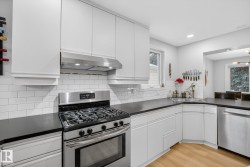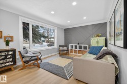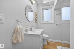 Welcome to this beautifully renovated 1½-storey home in sought-after Strathearn, tucked away on a quiet, tree-lined street just steps from the LRT. Offering 1,282 sq ft of updated living space, the home features a flexible layout with 3 bedrooms upstairs, 2 bedrooms down, and 2.5 bathrooms—ideal for families, guests, or home office needs. Recent renovations are complemented by new flooring, triple-glazed windows, central A/C, and newer 50-year metal roof for lasting comfort and peace of mind. Enjoy the convenience of a double detached garage and a walkable lifestyle close to great schools, parks, and river valley trails. A move-in-ready home in one of Edmonton’s most connected and community-focused neighbourhoods.
