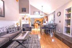 This uniquely designed home offers the perfect blend of comfort, character, and space for both everyday family living and effortless entertaining. From the moment you arrive, you’re welcomed by a charming covered front deck with a cozy seating area — an ideal spot to relax and enjoy the outdoors. Step inside to a spacious foyer that opens into the light-filled living room, where soaring vaulted ceilings create an airy, open feel. The adjoining dining area features a south-facing window overlooking the yard, allowing natural sunlight to pour into the heart of the home. The kitchen is thoughtfully laid out for both functionality and gathering, offering warm stained wood cabinetry, plenty of counter space, a powered island with breakfast bar and convenient pull-out drawers, plus a wall pantry for added storage.The main level also features two generously sized bedrooms, a 4-piece bathroom complete with a jetted tub, a 2-piece powder room, and a large rear mudroom — perfect for busy family life. Upstairs, the loft-style primary suite provides a private retreat with a walk-in closet and 3-piece ensuite. A true highlight is the covered balcony off the primary bedroom — the perfect place to enjoy your morning coffee or unwind at the end of the day while taking in the southwestern exposure, stunning sunsets, and mountain views in the distance. The developed basement adds even more living space with a comfortable family room featuring a dry bar, a fourth bedroom, laundry and utility rooms, and a large storage area. Outdoors, the landscaped and fenced backyard is designed for enjoyment, with a spacious patio ideal for hosting family and friends. The detached 21’ x 25’ garage includes a loft space — perfect for a workshop, crafting area, or creative studio. A double concrete driveway provides ample additional parking. Numerous upgrades have been completed over the years, including 100-year shingles with snow guards (approx. 2008), new windows (approx. 2008), upper-level balcony cover, updated paint, light fixtures, flooring, trim, and basement carpet. Situated on a corner lot in the family-friendly Tiffin subdivision, you’ll appreciate the welcoming atmosphere — from festive holiday decorating to friendly neighbours — all while being conveniently close to amenities, schools, the YCE Rec Plex, and the Town’s scenic trail system. Move-in ready and full of charm, this is a home you won’t want to miss.