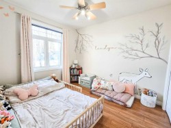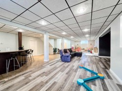 Welcome to Wilshire Estates! This stunning 1,845 sq ft bungalow sits on a beautiful 0.37-acre lot surrounded by mature trees and backing onto a peaceful greenspace — offering privacy and nature right at your doorstep.Inside, you’ll find 5 bedrooms, 3 bathrooms, and central air conditioning for year-round comfort. The open-concept living area is bright and inviting, with a gorgeous view of the backyard. The spacious kitchen features an oversized island with sink and dishwasher, walk-in pantry, plenty of cabinetry, under-cabinet lighting, and high-end stainless steel appliances. French doors from the dining area open onto a covered composite deck with a gas BBQ hookup — perfect for entertaining.The main level includes 3 bedrooms and 2 full bathrooms, including a lovely primary suite with a 3-piece ensuite and private deck. A dream mudroom/laundry room with sink leads to the oversized heated double garage.Downstairs, you’ll love the finished basement with in-floor heat, high ceilings, a wet bar, a family rec room, 2 additional bedrooms, and a 3-piece bath. It’s an ideal setup for movie nights, a home gym, or hosting guests.The fully fenced backyard features built-in cedar benches and planters, an apple tree, two sheds, a new brick patio, and RV parking. Recent updates include paint (2023), new smart kitchen and laundry appliances (2021), and hot water tank in 2023.Located in a family-friendly neighborhood close to trails, parks, and schools — this home truly has it all!