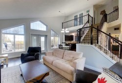 Welcome to Bench Creek Estates — where mountain views and modern comfort unite. This custom two-storey home on 4.05 acres offers breathtaking southwest views of the Rocky Mountains, combining refined country living with the convenience of being in town. The open-concept design features a striking staircase, bright and spacious living areas, and a gourmet kitchen with abundant cabinetry, a center island, stainless steel appliances, and a new induction stove — ideal for both daily living and entertaining.The master suite includes two private balconies — one overlooking the lower level and the other framing majestic mountain views — and a spa-inspired 5-piece ensuite with a large air-jet soaker tub, walk-in shower, and dual vanity, complemented by a spacious walk-in closet with convenient washer and dryer. Two additional bedrooms and 4 pc bathroom complete the upper level.The fully developed walkout basement offers comfort and entertainment, featuring in-floor heating, a theatre room with projector and sound system, a large family room, a 3-piece bathroom, and a spacious fourth bedroom. The triple attached heated garage provides ample parking and includes a bonus room, perfect for a home office, gym, or ultimate man cave.Recent upgrades and features include new electronic window blinds, fresh interior paint, central air conditioning (2025), and a large new deck — perfect for entertaining or enjoying the spectacular views. Additional highlights include in-floor heating in the basement and garage, hot water on demand, and three new garage door openers with video capabilities, combining comfort, convenience, and modern technology throughout.This property is one of 11 in a “bare land condominium”, where you own your lot and have access to 30 acres of fenced and cross-fenced common land, with Bench Creek running along the edge — offering the perfect balance of privacy, community, and natural beauty.