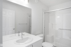 Welcome to the "Sampson" built by the award-winning builder Pacesetter homes and is located in the heart of Fort Saskatchewan and just steps to the neighborhood park and walking trails. As you enter the home you are greeted by luxury vinyl plank flooring throughout the great room, kitchen, and the breakfast nook. Your large kitchen features tile back splash, an island a flush eating bar, quartz counter tops and an undermount sink. Just off of the kitchen and tucked away by the front entry is a 2 piece powder room and a main floor den. Upstairs is the master's retreat with a large walk in closet and a 4-piece en-suite. The second level also include 2 additional bedrooms with a conveniently placed main 4-piece bathroom and a good sized bonus room. Close to all amenities. This home is now move in ready !