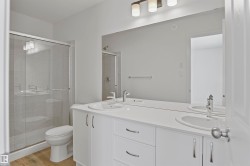 Welcome to the Dakota built by Pacesetter Homes and located in Forest Ridge community. This home has a well design and higher-end finishes such as luxury vinyl plank flooring flows throughout the great room, kitchen, and breakfast nook, creating a warm and inviting atmosphere for family living and entertaining. The kitchen is a chef's dream, featuring elegant two-toned cabinets with an upgraded door profile, quartz countertops, a stylish tile backsplash, and a large island with a flush eating bar. An under-mount stainless steel sink adds both functionality and aesthetic appeal. A 2 -piece powder room is located off the breakfast nook near the rear entry. Upstairs, the primary retreat offers a spacious walk-in closet and a luxurious 4-piece ensuite with double sinks, providing a private oasis. The second level also features two additional bedrooms and a main 4-piece bathroom, perfect for families. ***under construction photos and colors may vary, To be complete by April / May 2026 **