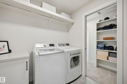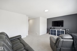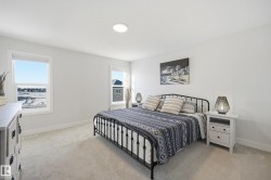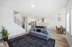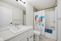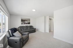 Quality Built by Santos Homes — Simply Stunning! This 2123Sqft 3-bedroom, 2.5-bath, two-storey home is packed with upgrades, including an extended driveway, shiplap gas fireplace, natural gas BBQ hookup, quartz kitchen countertops, and convenient built-in wood shelving—just to name a few.The expansive main floor features 9-ft ceilings and durable, easy-maintenance vinyl flooring throughout. The impressive kitchen boasts oversized Craft cabinetry, a large island, and a walk-through pantry—perfect for both everyday living and entertaining. A generously sized back-entry mudroom offers built-in storage and bench seating for added convenience.Upstairs, enjoy a bright bonus room with large windows that flood the space with natural light. The primary suite is a true retreat, featuring a spa-like 5-piece ensuite with quartz countertops, a stand-alone soaking tub, oversized shower, and a walk-in closet with direct access to the upstairs laundry. Two additional bedrooms & 4 Piece Bathroom Complete this home