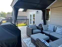 This 1300 sqft awesome walk out basement home has 5 bedrooms and 3 full bathrooms with 2nd kitchen. The main living area is open and bright with high ceilings. Kitchen has loads cabinetry, stainless appliances and an island for YOUR family to gather around. Dining and living room round out this great family or entertaining space. Patio doors off the dining area that lead to the 12x22' deck. Gazebo and all patio furniture will stay with YOUR new home, even a new BBQ. Main floor master has a huge ensuite with a large soaker tub and stand-up shower, large walk-in closet. On the top level you will find 2 more good sized bedrooms, and a 4 pc bathroom. Downstairs you have a beautiful finished family room with walkout patio doors to YOUR covered deck from above. This home has a 2nd kitchen or wet bar area for your convenience so you don’t have to run upstairs every time you want a cold one. 2 more bedrooms and another 4 pc bath bathroom, separate laundry/utility and furnace room. The attached double finished garage is 22w by 24 l with a floor drain. Double cement parking pad for your vehicles side entry way to back yard. Shed in back yard is where you can storge all your toys so not in your garage. Make it your family home or maybe a mother in-law suit with separate entrance with basement door that locks to the main home..To wrap this all up with a bow it has Central air. Owner will negotiate on all furniture if you like to buy YOUR home furnished with top-of-the-line Ashley furniture. You can move right om in !!!!
