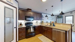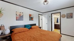 This charming home, located in the peaceful village of Gadsby, sits on a 0.64-acre lot that provides plenty of privacy and outdoor space to enjoy. The home offers a bright, spacious, and well-designed living environment suited for families, retirees, or anyone seeking a slower pace of life. There is a generous sized deck leading up to the main entrance, with space for all your deck furniture. Inside, the living room immediately impresses with a vaulted ceiling and windows across the front wall, creating an open and welcoming atmosphere filled with natural light. Adjacent to this is the dining area with direct access to another deck, making indoor–outdoor living effortless. The modern kitchen is both stylish and highly functional, featuring rich dark wood cabinetry, stainless steel appliances, a corner pantry, and a tiered peninsula with seating—perfect for casual meals or morning coffee. Pendant lighting above the counter adds warmth and visual appeal. The primary bedroom includes two closets and a spacious ensuite with double sinks and a round corner tub/shower. Two additional bedrooms offer flexibility for family, guests, or a home office, while the main bathroom with tub/shower serves the household comfortably. The side entrance doubles as a laundry room and has access to a third deck. Upgrades to the home include shingles and siding (2019), hot water heater (2021), washer, dryer, and dishwasher (2022), furnace and fridge (2023), and updated lighting. The yard is partially fenced and includes two storage sheds, a greenhouse, and raised planter boxes, making it ideal for gardening, hobbies, or simply relaxing in a quiet country setting. This layout maximizes space while blending practicality with inviting design, making this a wonderful opportunity to enjoy quiet country living in a friendly rural community.
