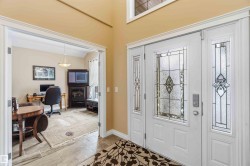 Look No Further! Welcome to 40 Landing Trails Dr in the Town of Gibbons. Stunning Bungalow on a 1/3+ acre lot with a Triple Heated Garage, large front driveway & over 2000sq ft of living space to enjoy! The main floor features 10ft ceilings, grand foyer, front den, living room with a gas FP & lots of natural light. Dining room, kitchen with cherry cabinets, granite countertops, island with an eat-up area, walk-in pantry, dining nook looking out to the private covered deck with natural gas for a bbq. The laundry room has access to the garage. 2 bedrooms, 4pc bathroom, primary bedroom with a huge walk-in closet, 4pc ensuite & soaker tub. The finished basement boats a rec room, 2 more bedrooms, 3pc bathroom & storage room. 2019 50yr Shingles, 2021 HE Furnace & HE HWT, 2022 Central AC & Radiant Furnace in garage. Garage has 8ft doors, floor drain, hot/cold taps. New iron gate allows access to the huge fenced yard, storage shed, raised garden beds & fire pit area. Impressive pride of ownership throughout!!