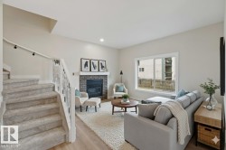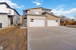 BACKS ONTO A PARK! This new construction, attached 3-bedroom half duplex in Gibbons, AB offers a premium location that can't be beat. Your new home is the definition of contemporary living. The bright, open-concept main floor features a sleek, modern kitchen with quality finishes and a cozy gas fireplace in the living area. Upstairs, you'll find three spacious bedrooms. With Laundry and massive en suite bathroom for the master. The key feature is the incredible access: Step out onto your deck and directly into the community park, perfect for young children ! This provides the ultimate backyard amenity without the maintenance. The outdoor space offers a blank canvas for you to design and create your dream yard exactly how you want it. Completing the package is the convenience of an attached double garage and a basement ready for your personal development plans. Possible basement suite with rough-ins for future kitchen, laundry and bath! Completion within the next few weeks.some picture are Virtual
