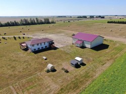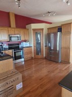 Unique Executive Acreage for Sale! This one of a kind Property along Hwy 2 offers many opportunities, as it can house two families comfortably, great for starting a home based business or live on the upper floor and rent out the lower one. Each floor features full kitchens with oak cabinetry(decorative accents),granite countertops, fully outfitted with all appliances, livingrooms, 3 bedrooms, Master on upper level with 4pc Ensuite with jetted tub and access to Sunroom.The upper level boasts an open design with Vaulted Ceilings, abundance of southfacing windows, access to wraparound upper deck as well as the all season Sunroom on the Westside. The quality and craftmanship is visible throughout this amazing home with tile and hardwood flooring and an absolutely stunning 3pc bathroom on lower level finished in floor to ceiling Travertine tile with a multi jet walk-in shower with steamer option. The wraparound front deck overlooks the well groomed acres with many spruce trees(planted to surround a future Gazebo if desired). The State of the Art 60' x 60' Shop/Garage is fully insulated,wired,heated with mezzanine, bathroom (3pc/shower),3/4 ton hoist and Air Compressor. Fully serviced with Municipal water, power and natural gas and located only minutes from Town and Amenities. Call or text for your viewing today.