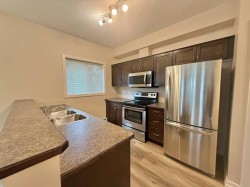 Perfection is Carlyle Estates in Hintons its the finest apartment condominium. This building features tall and wide pressurized, air conditioned hallways with motion detection lighting. Elevator access to all floors including the secure heated underground parkade where your titled stall will be located. Another powered titled parking stall is located outside in the parking lot. Plus a titled storage unit. This is a large second floor corner unit, west facing away from busy Mountain street traffic. Garnering a fair amount of sunlight during the day while offering privacy. This unit features dark cabinets and brand new acoustic luxury vinyl plank flooring and nearly new all stainless steel appliances! Carlyle Estates is maintained to the highest degree. The condo association is active and well managed. Once inside this building and unit you will find that it is in nearly perfect condition. This is what makes this unit perfect for turn key, worry free living in the foothills of the rocky mountains.