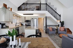87 White Pelican View at Lake Newell Resort, this beautifully renovated 1.5-storey home offers a fully developed walk-out basement and an attached heated garage. A bright and thoughtfully updated property featuring 4 bedrooms and 3 bathrooms, perfectly suited for families, first-time home buyers, or those looking for the lake lifestyle.The main floor showcases an inviting open-concept layout with kitchen, dining, and living areas highlighted by soaring vaulted ceilings and an eye-catching window feature wall that floods the space with natural light. The living room is warm and welcoming with a gas fireplace, while the kitchen impresses with granite countertops, a functional island, and newer stainless steel appliances. Two bedrooms and a 4pce bathroom with jacuzzi tub complete the main level.Upstairs, a charming office loft overlooks the main living space, leading into the spacious primary suite featuring vaulted ceilings and a stylish 3pce ensuite with neutral tile, vessel sink, and an upgraded shower with body sprays.The walk-out basement offers exceptional additional living space with a large family room and exercise area, a 4th bedroom, a generous 3pce bathroom, storage room with cabinetry ideal for a housing your deep freeze, and a convenient utility and laundry room.Recent updates include fresh paint, modern plumbing and lighting fixtures, a newer tankless hot water system, and central air conditioning for year-round comfort.Outdoor living is just as impressive, with a wrap-around deck leading to a covered patio and storage below, plus a separate firepit area and patio surrounded by lawn, perfect for entertaining or relaxing after a day at the lake.A move-in-ready home offering space, style, and the resort lifestyle that Lake Newell Resort is known for. Quick possession is possible, book your showing today.