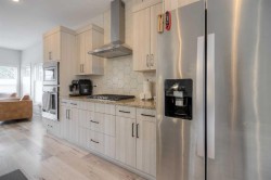 If you’re looking for a elevated adult living this is the space for you. This quiet end unit condo is bright and features three spacious bedrooms, two-and-a-half baths and is in the Coulee Creek neighborhood, just minutes from parks, shopping, and top tier dining spots. This home offers a peaceful, private escape you’ll love coming home to. The oversized deck is perfect for morning coffee or entertaining guests in a natural setting. Inside, the open-concept main floor showcases modern finishes and luxurious laminate flooring, all part of the largest floor plan in the complex—only a select few units offer this much space! The kitchen is equipped with a large island, quartz countertops, a gas cooktop, and seating—ideal for both everyday meals and entertaining. It opens seamlessly into the dining and living areas, where extra windows bring in loads of natural light and offer beautiful views of the surrounding trees. A walk-in pantry and stylish 2-piece powder room complete the main floor. A glass-railed staircase keeps the space feeling large and open. The upper level you’ll find three generous bedrooms, including a spacious primary suite with a walk-in closet featuring custom built-ins, and a modern 3-piece ensuite with a tiled walk-in shower. A 4-piece main bathroom, plus convenient upstairs laundry just off the primary bedroom. The tandem double garage provides room for two vehicles and includes ample storage space and possibilities. Condo fees covering management and exterior maintenance give you the flexibility of being able to enjoy your new space with peace of mind. Pet-friendly, with no age restrictions, with plenty of visitor parking and an unbeatable location, this property perfectly blends luxury, privacy, and convenience.Opportunities like this don’t come often—book your viewing today with your REALTOR® and see why this home stands out!
