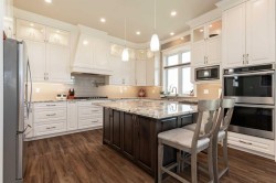 Tucked into the prestigious Edgemoor subdivision, this stunning estate offers the best of both worlds—quiet country living just minutes from West Lethbridge. Set on 1.1 acres of beautifully landscaped land with views of the coulees, mountains, and open fields, it’s hard to beat this location—or the lifestyle that comes with it.The main home is over 5,600 sq. ft. of thoughtfully finished space, with 10-foot ceilings on the main floor and 9-foot ceilings in the basement. Built with brick and stucco, and finished with granite countertops, stainless steel appliances, vinyl plank flooring, and four fireplaces, this home is as comfortable as it is elegant.The layout is ideal for families and entertaining, with a large chef’s kitchen featuring a central island and plenty of storage. Just off the kitchen are spacious main living areas, a sitting room, bright home office, and main-floor laundry/mudroom. The primary suite is a private retreat with its own granite-framed fireplace and a beautifully finished 5-piece ensuite.Upstairs, you’ll find a huge rec room with a fireplace and two oversized bedrooms—each 16' x 23'—perfect for kids or extended family visiting from out of town. Downstairs, the finished basement includes a massive family room with another fireplace, additional bedrooms, storage, and space to stretch out.Out back, a separate carriage house offers even more flexibility. With a double and single garage below and a 2-bedroom legal suite + office/storage/potential for a bachelor suite above, it’s perfect for multi-generational living, guests, or rental income.The property is fully landscaped with trees, underground sprinklers, and privacy throughout. Both the main house and carriage suite are equipped with fire suppression systems and connected to Telus fibre optic internet for fast, reliable service.Whether you're raising a family, working from home, hosting long-term guests, or just looking for breathing room close to town—this home offers space, comfort, and endless possibilities.