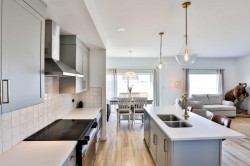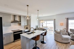 Better than brand new! Have you been looking for a new home, but the thought of putting the finishing touches on it is too daunting?! This is the one for you! Air conditioning? Check. Front and rear landscaping? Check. Fully fenced? Check. Window coverings? Check. Washer and dryer? Check. Framing the basement? Check. Not only did this wonderful seller finish off all these things for you, they also upgraded a few things to elevate this home. Sleek glass railing, not one but TWO fireplaces, finishing the stairwell to the basement, permanent Christmas lights, extra built in shelves in the pantry, and the best looking garage you’ve seen in awhile… it’s fully finished complete with paint, upgraded flooring, and incredible built in shelves you need in your life. This two storey home is wonderfully designed. Through the front door you enter in to a large sunken foyer, then up a couple steps in to your bright, open main floor. The kitchen boasts quartz countertops, stainless steel appliances, an island with good working space, and a walkthrough pantry with extra shelves. You’ll love the fireplace in the living room with modern detail, making this space feel extra cozy! The glass railing flows nicely from the main to second floor and really does provide the wow factor and makes things feel higher end. The bonus room greets you at the top of the stairs, with another electric fireplace to make game nights and spending time together as a family even more cozy. Two bedrooms, laundry, and a full four piece bathroom are on the second floor as well as your primary bedroom. The primary features an incredible vaulted ceiling which totally transforms this space, and gives you your own oasis. Huge windows flood the entire space with glorious natural light. A nice size walk in closet and ensuite with walk in shower complete the space. We really need to talk about the garage… it’s extremely tall, and the built in bin storage system is incredible. It’s finished to paint stage, has upgraded flooring, and is roughed in for a heater if ever you want one. Outside is fully finished with front and rear landscaping, and is fully fenced as well. Just bring the dog and they’ll have all the room to roam! Located just a quick couple minutes walk to the phenomenal Legacy Park, you will absolutely love this neighborhood. This park is over 70 acres and features an epic playground, several paved walking paths, a spray park, sports courts, skate board park, picnic shelters, a sledding hill, a pond and wetlands, and a community pavilion. Your kids will practically live at this park year round! This home is also located close to schools, groceries, pharmacies, restaurants, and more. Give your REALTOR® a call and come see this practically brand new home with flooded with upgrades.