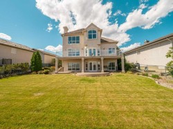Welcome to this breathtaking custom-built two-storey estate, perfectly positioned on the shores of Fairmont Lake, offering over 4,000 sq. ft. of fully developed living space and panoramic lake views from nearly every room. Designed with exceptional craftsmanship and attention to detail, this home features four spacious bedrooms, 3.5 luxurious bathrooms, and a walk-out basement that enhances both functionality and flow. Entertain with ease in the expansive dining and recreation areas, relax in the private 7-seat theatre room, or unwind by one of three elegant gas fireplaces. The gourmet kitchen is a chef’s dream, complete with granite and Corian countertops, built-in appliances, ample cabinetry, and stunning lake vistas. Upstairs, the bedrooms are thoughtfully laid out for privacy and comfort, including a primary suite with spa-inspired amenities. Outdoor living is just as impressive with a covered patio below for year-round enjoyment, and beautifully landscaped surroundings. A spacious triple-car garage provides plenty of room for vehicles, storage, or hobbies. This is a rare opportunity to own an architecturally striking lakefront home where luxury, comfort, and natural beauty come together seamlessly.