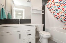 Skip the stress of new construction and move into a well cared for home in the desirable community of Copperwood. Backing directly onto the serene Miners Park and Pond, this property is fully landscaped, irrigated (sprinkler system and drip system), and fenced, featuring a two-tiered deck with built in storage underneath, a luxurious hot tub, a kids' play set, and a garden shed. The interior is equally impressive with a front den/office space, a modern living room with a gas fireplace, and a gourmet kitchen boasting ceiling-height cabinetry, a gas stove, and a Microwave convection oven, and a Bosch dishwasher. Upstairs you will find a expansive Primary Bedroom with a large 5PC ensuite including a large 6ft soaker tub. Two more bedrooms, a full bathroom, laundry and a spacious Bonus room fill the top floor. While the fully developed basement is ready for movie nights with integrated speakers, projector hook ups and a complete wet bar. Another full bedroom and bathroom complete the basement along with ample storage areas. In addition to the size and location of the home, it comes complete with Hunter Douglas blinds, central air, and underground sprinklers. There is the rough is if one so desires to have central vacuum in their property. This home is a turn-key retreat on a quiet street with an extended driveway and front garage. Don't delay and contact your Realtor® to set up your private viewing for this wonderful home.
