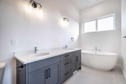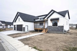 YOU WILL LOVE THIS BRAND-NEW HOME – Never lived in, this home has style, size and upgrades you have been looking for… With 1546 square feet above grade, this raised farmhouse style bungalow is impressive and will call your name the moment you walk through the front door. This home features main floor laundry, large primary bedroom with huge ensuite that features a tile shower and dual sinks. The main floor living area features vaulted ceilings with large open spaces allowing you to define the floor space with your furniture… the large abundant window glazing floods the main floor of this home with natural light – always bright and cheery. The kitchen is immaculate in design- totally custom and beautiful!! You will love this kitchen! Triple attached garage measures 34’ wide and 24’ deep. This location is off he beaten path... You will love the reduced traffic which comes from living on a non-busy street!! (Note: additional extra deep driveway will be poured perpendicular to the existing driveway next to walk through door of garage on the east side of home)