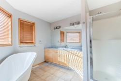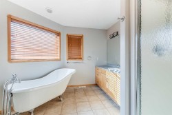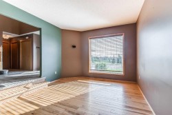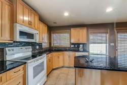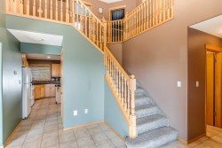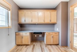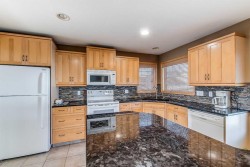 This impressive two-story home offers both elegance and functionality, starting with a grand front entrance that opens to soaring ceilings and a full view of the second floor. Enjoy the peaceful coulee view right from your doorstep! The main floor includes a front living room that flows into a private office with built-in desk and cabinetry—perfect for working from home. The spacious kitchen features an abundance of cabinetry, black granite counter tops, built-in eating space , and a cozy adjacent sitting or dining area with a wood-burning fireplace. You’ll also find a 2-piece bathroom and a well-equipped laundry room with plenty of storage on this level. Upstairs, you’ll find four generously sized bedrooms, two with built-in desks—ideal for kids or homework spaces. The spacious primary bedroom features a full en-suite with a beautiful clawfoot soaker tub and separate shower. A 4-piece main bath completes the upper level. The fully finished basement offers a large family room, a guest bedroom with direct access to the third full bathroom, and a storage room with ample built-in shelving. Additional highlights include a heated double attached garage, a covered back patio with a gas BBQ line, underground sprinklers, and an unbeatable location with scenic views.
