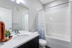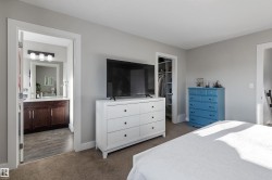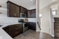 Welcome to this beautifully kept bilevel in Morinville! Built in 2017, this 1,382 sq ft home features a bright, open layout with vaulted ceilings that add extra space and light the moment you walk in. The primary bedroom sits on its own private level, complete with a walk-in closet and full ensuite — your own quiet retreat. Two additional bedrooms and another full bath offer great flexibility for family or guests. The unspoiled basement is ready for your ideas — rec room, gym, or future bedrooms. Enjoy the double attached garage with opener and controls, plus included appliances: built-in dishwasher, electric stove, fridge, washer, dryer, and window coverings. Modern, comfortable, and move-in ready — easy living in a growing community.
